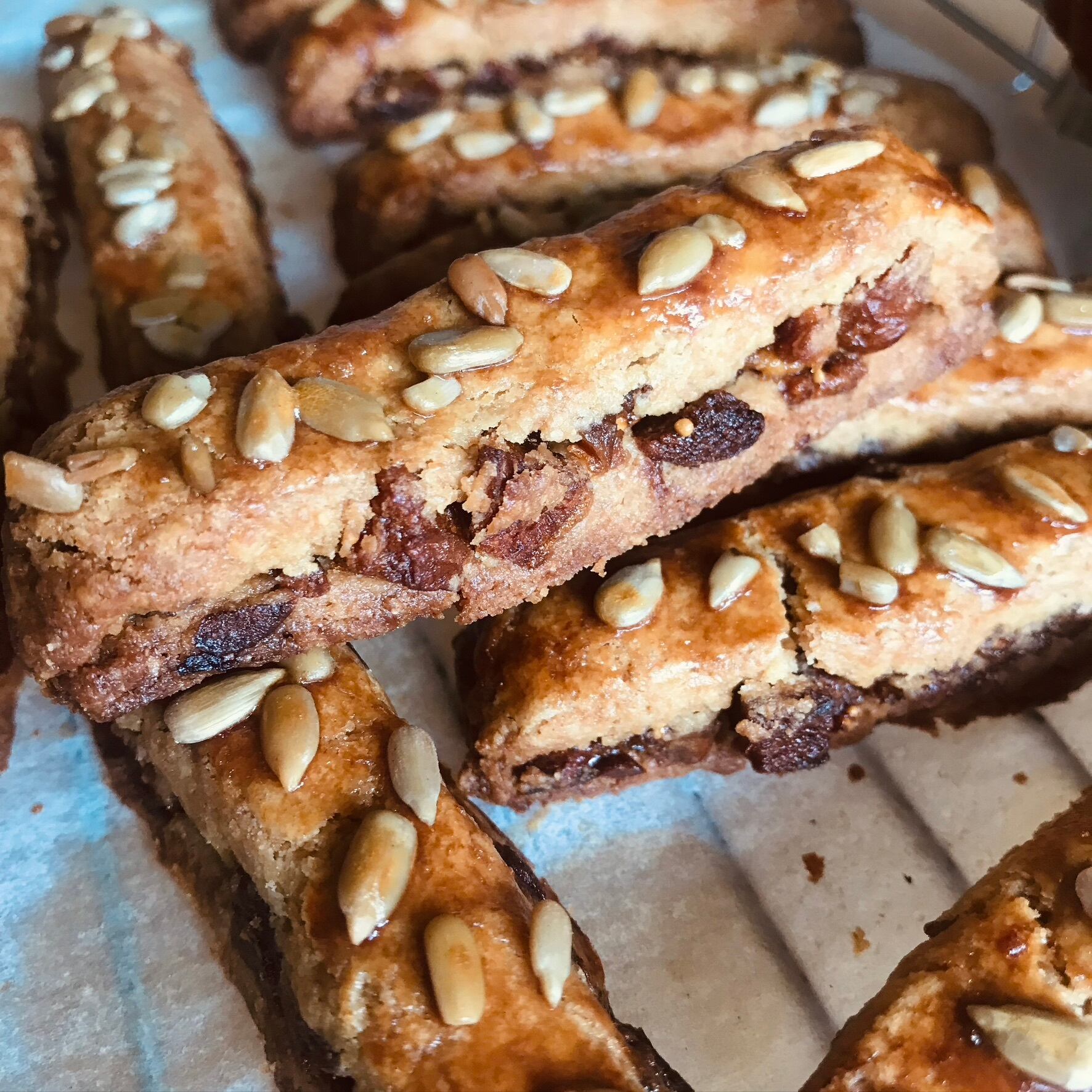 原材料: 有機アインコーン全粒粉、ドライイチジク、無漂白セミドライアプリコット、グラスフェッドバター、有機ココナッツシュガー、有機薄力全粒粉、自家製酵母、卵、ひまわりの種、天日塩、オーガニックバニラエクストラ(アレルゲン:小麦、乳、卵)