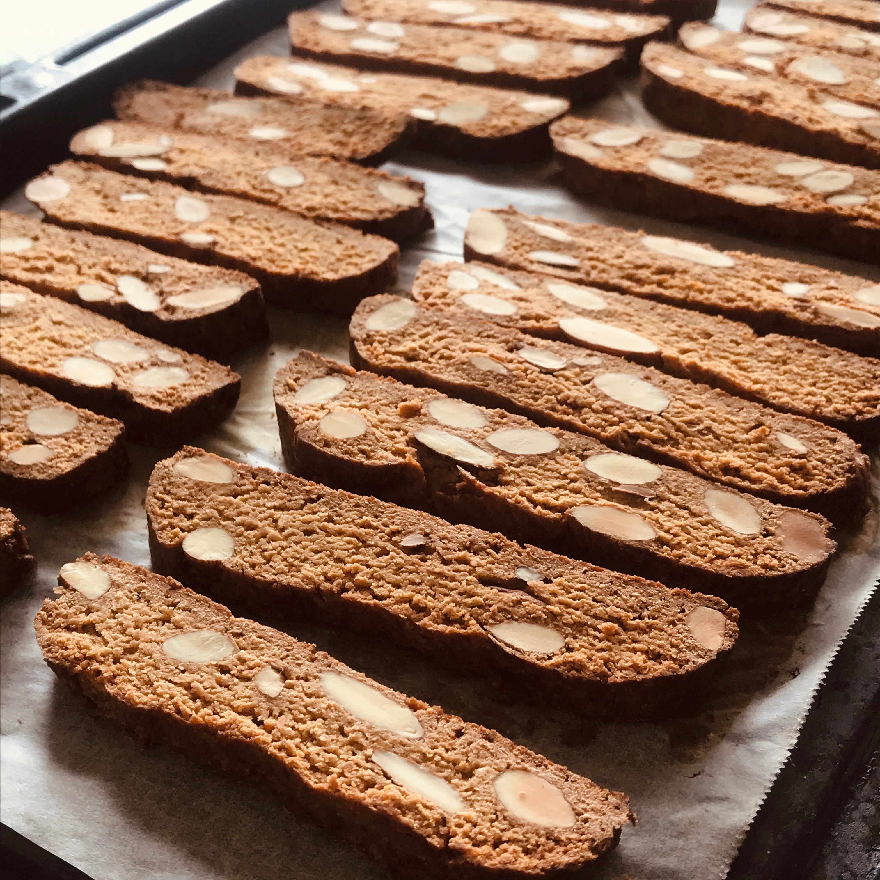 固めの食感で、粉やアーモンドの旨味を存分に感じて頂ける骨太な味わい。デザートワインやコーヒーに浸しても楽しめます。