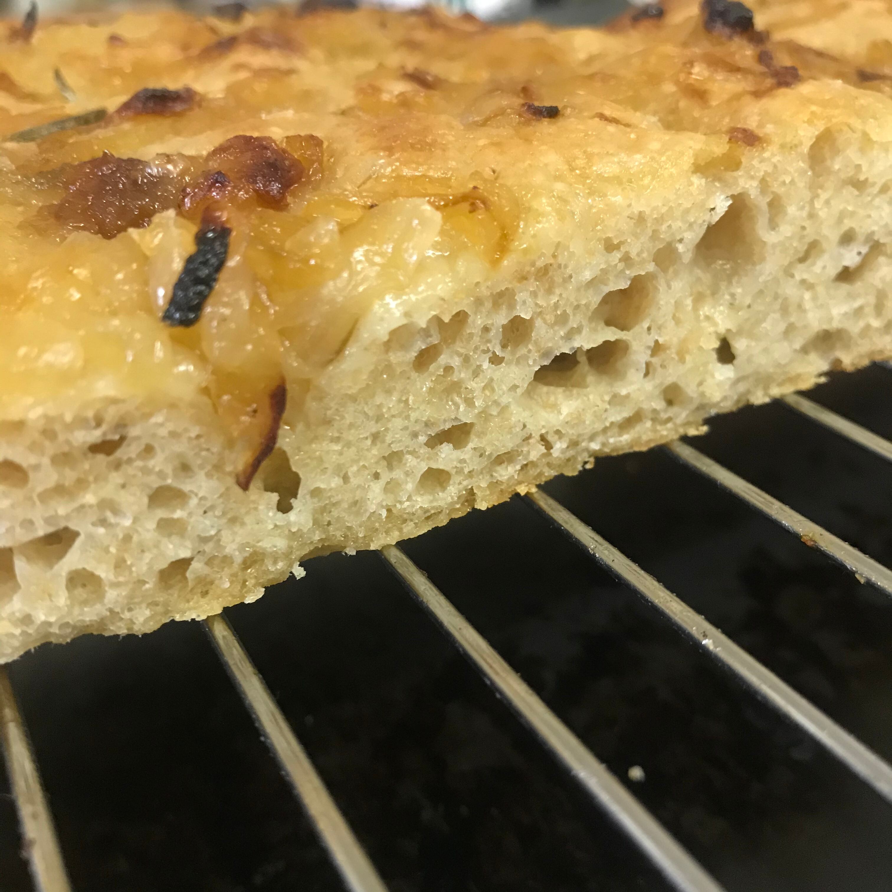 育てて12年目の自家製酵母でじっくりと醸しています。1時間以上かけて、ローリエやローズマリーとトロトロに煮込んだ玉ねぎをのせて焼き上げました。